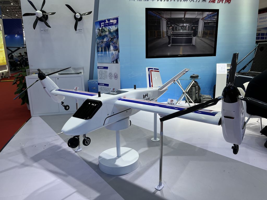 In the exhibition hall of a UAV show.White subject, blue and red stripes.The hybrid-wing drone model of Zilong became the focus. This model presents the structure and detail of the real machine at a 90% reduction level, and the process of producing it combines the precision of the process with the visuality shown in the exhibition hall, as follows: