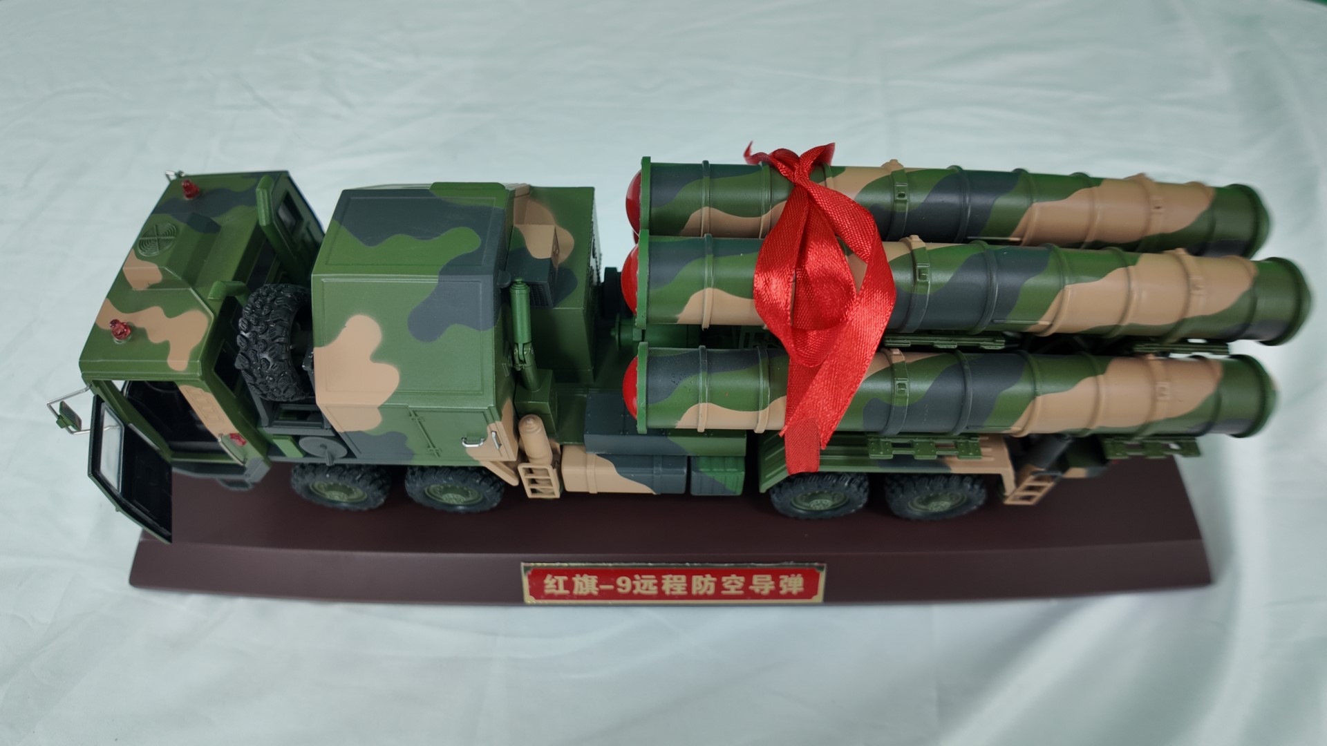 During the production process, reference is made to the structure ratio of the actual equipment of the red flag-9 (e.g., length of vehicle, height of launcher, diameter of missile) to ensure that the model is “like”; the details (e.g., missile segment, coloured texture of vehicle) achieves “sight” by “magnifying observation + manual correction”. The finished model, which is polished and coloured over multiple wheels, is accompanied by red ribbons as gift decorations that preserve both the hard-nuclear sense of military equipment and the precision of the gift, and are reduced to around 90 per cent, and are suitable for military lovers' collections as well as for transmitting military culture as a gift in the form of defence education.